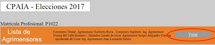 pantalla; donde Ud. podrá emitir su voto haciendo clic en el botón