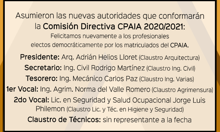 Felicitamos nuevamente a los profesionales electos democráticamente por los matriculados del Consejo Profesional de la Agrimensura, Ingeniería y Arquitectura de la Provincia de Santa Cruz.