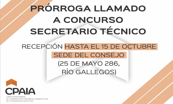 El Consejo Profesional de la Agrimensura, Ingeniería y Arquitectura de la Provincia de Santa Cruz, llama a concurso público de antecedentes y oposición para ocupar un cargo de Secretario Técnico.